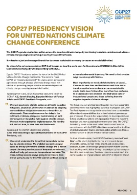 Egypt’s COP27 Presidency set out its vision for the 2022 United      extremely adversarial trajectory. We need to find creative