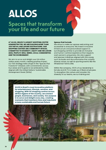 AT ALLOS, BRAZIL’S LARGEST SHOPPING CENTRE Spaces that include awareness programmes on DEI and offer mental health, as well as parental policies, ensuring